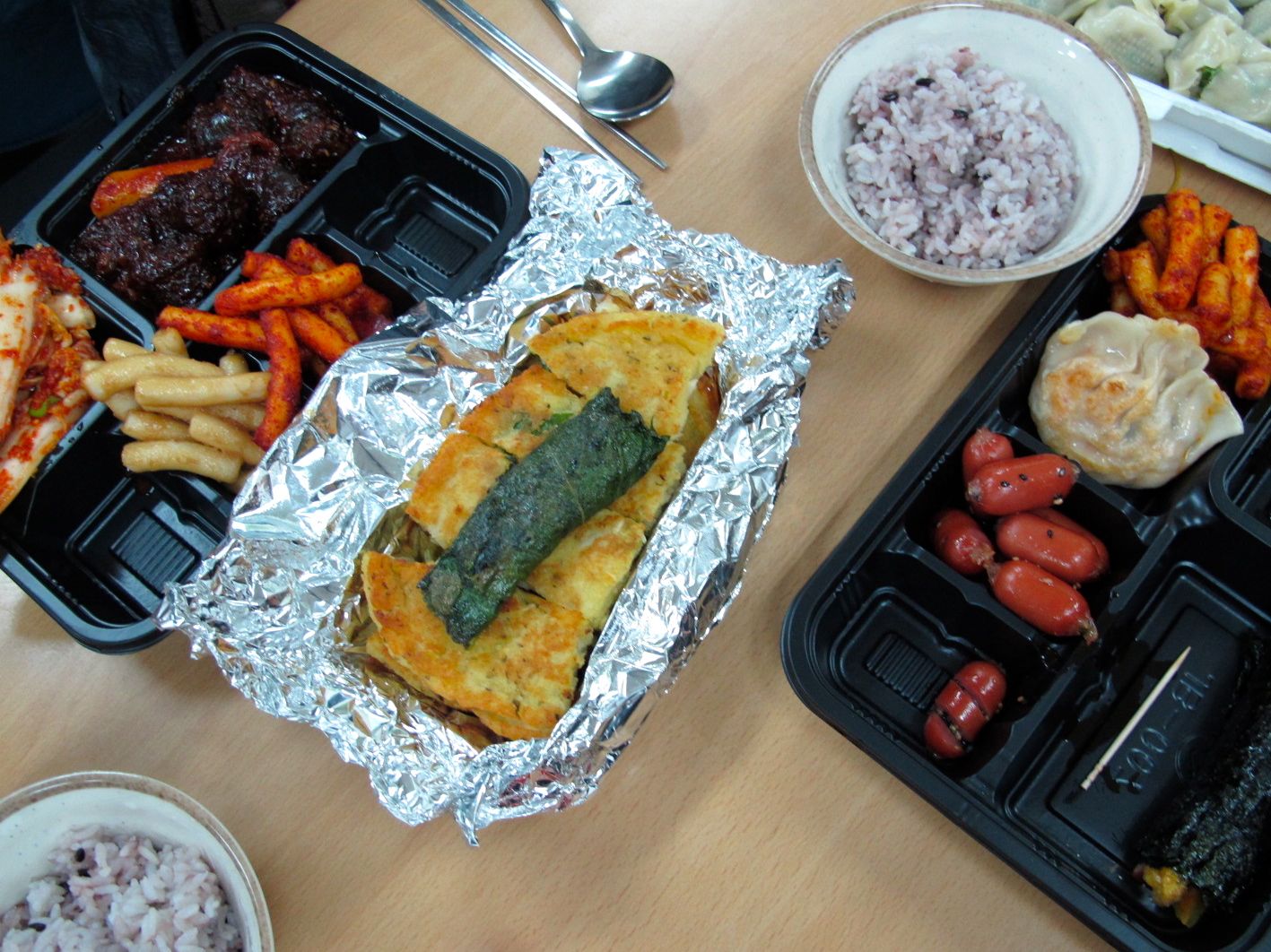 After making some nearly impossible decisions, we used our last few toshirak tokens to buy rice and soup to accompany our lunchbox fare, and we sat down in their cafeteria/dining room area to enjoy our lunch.