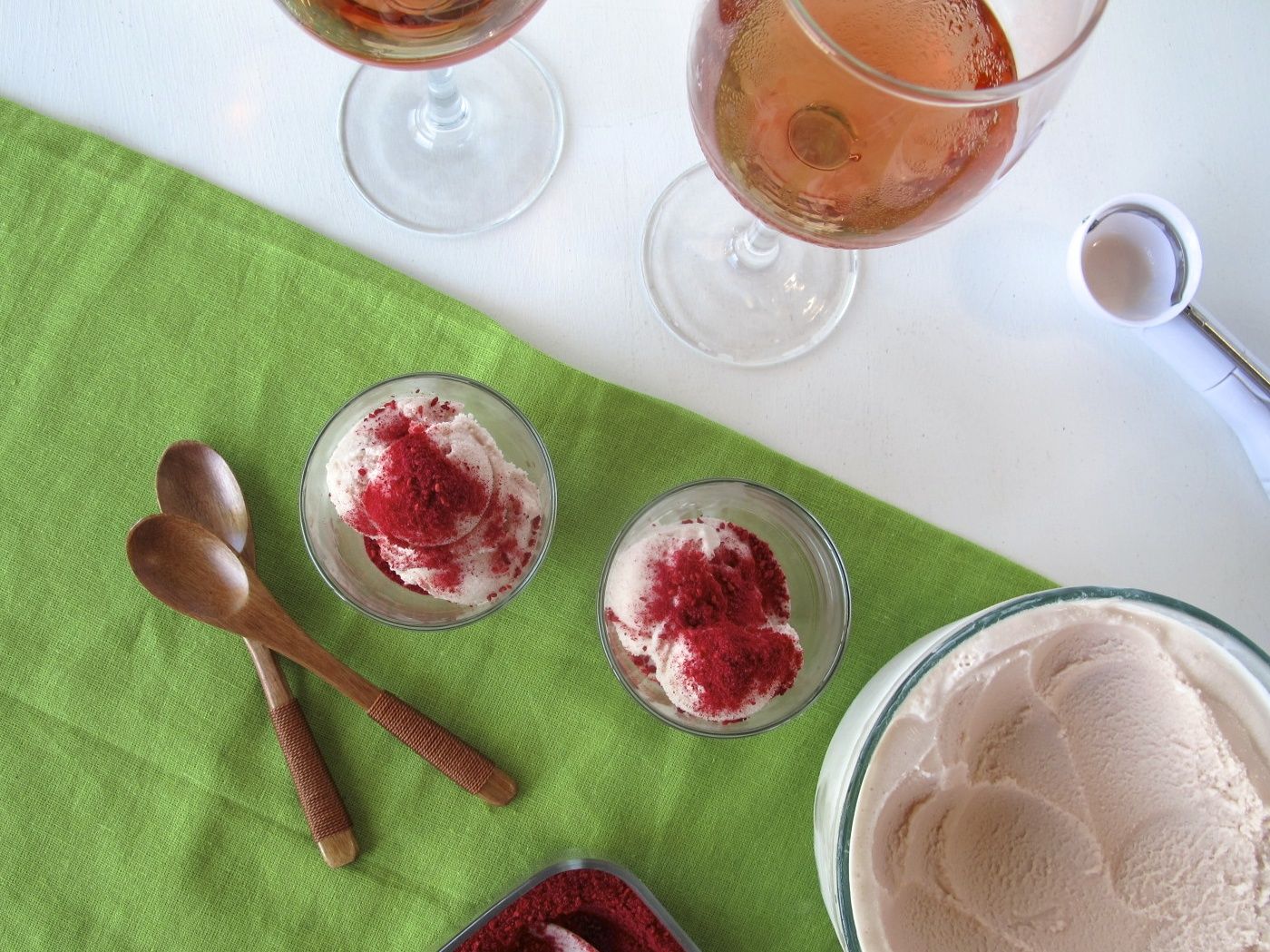 Pomegranate Rosé Frozen Yogurt with Pulverized Raspberry DustingPin it!